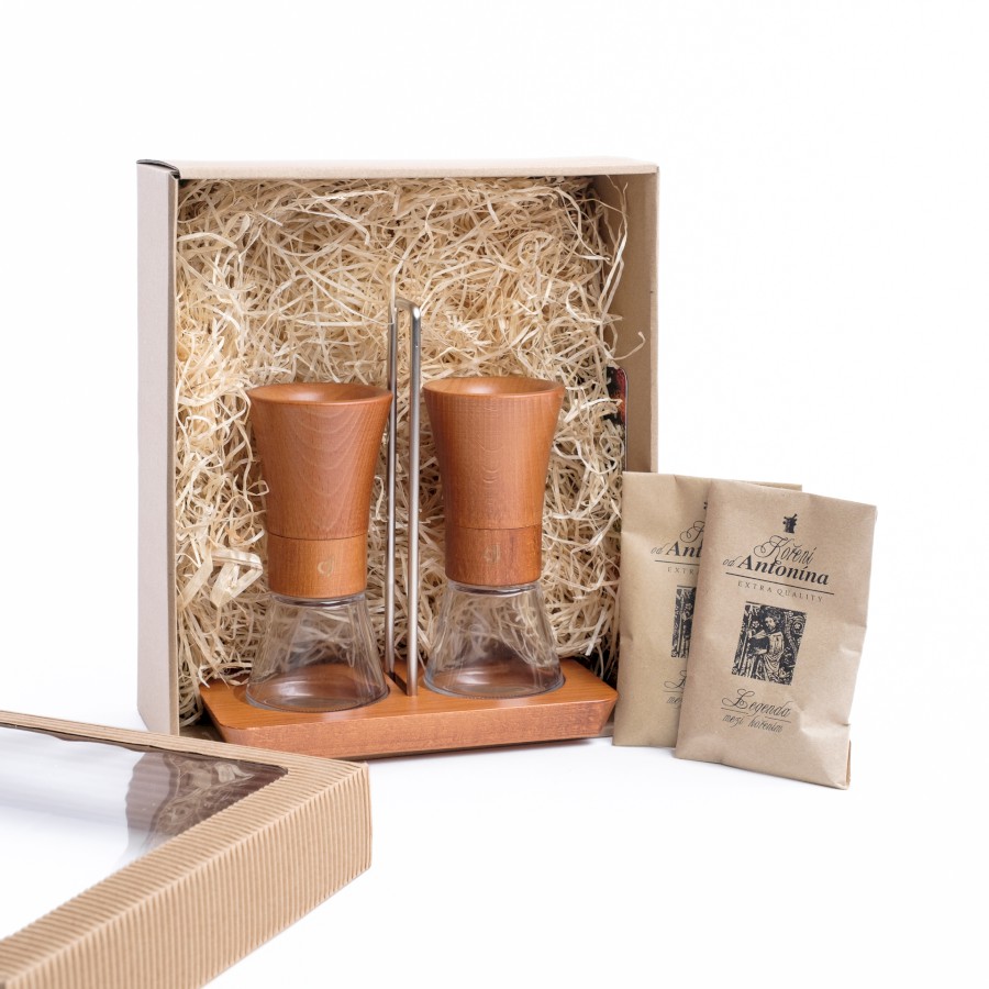 Naše dárková sada mlýnků FARO nadchne každou vaši návštěvu! Mlýnky jsou zhotoveny z bukového dřeva s certifikátem FSC® a čirého skla. Vyrobeno s láskou v České republice.