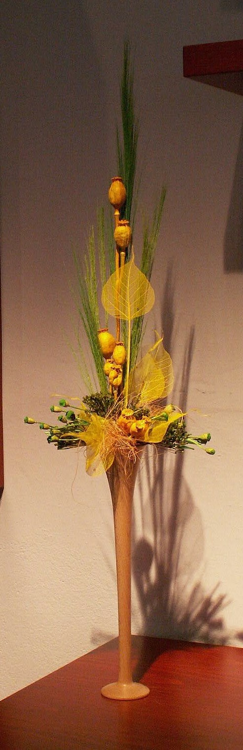 Dřevěná váza z bukového dřeva, vhodná pro aranžmá sušených květin.