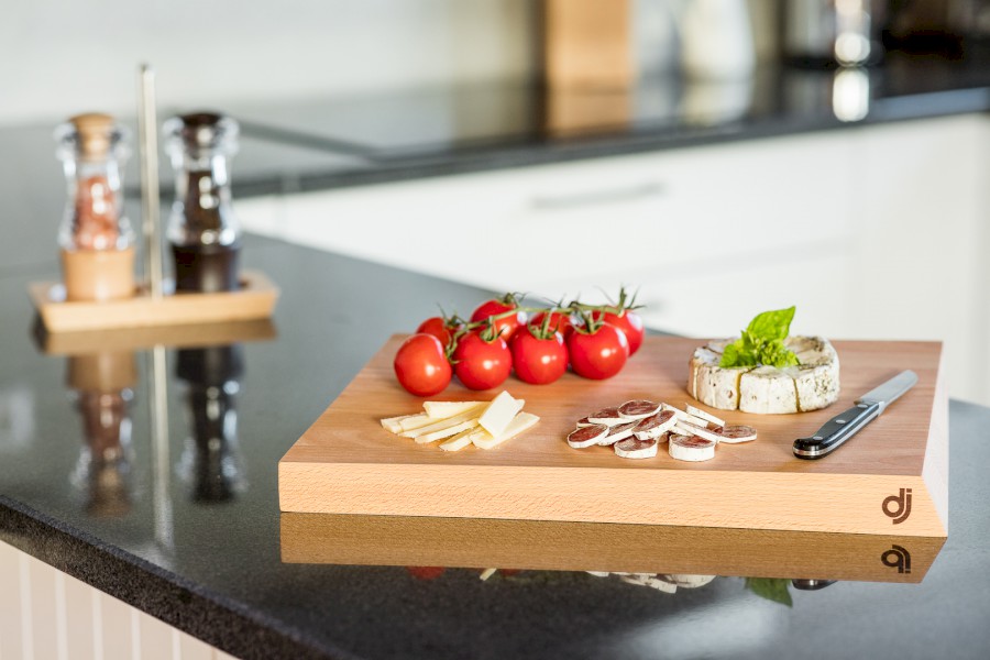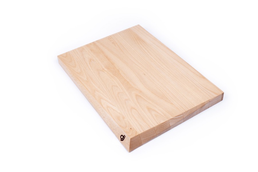Kuchyňské prkénko PROFI M je vyrobeno z bukového dřeva s certifikátem FSC®. Výrazným detailem prkna jsou zajímavě zkosené hrany.