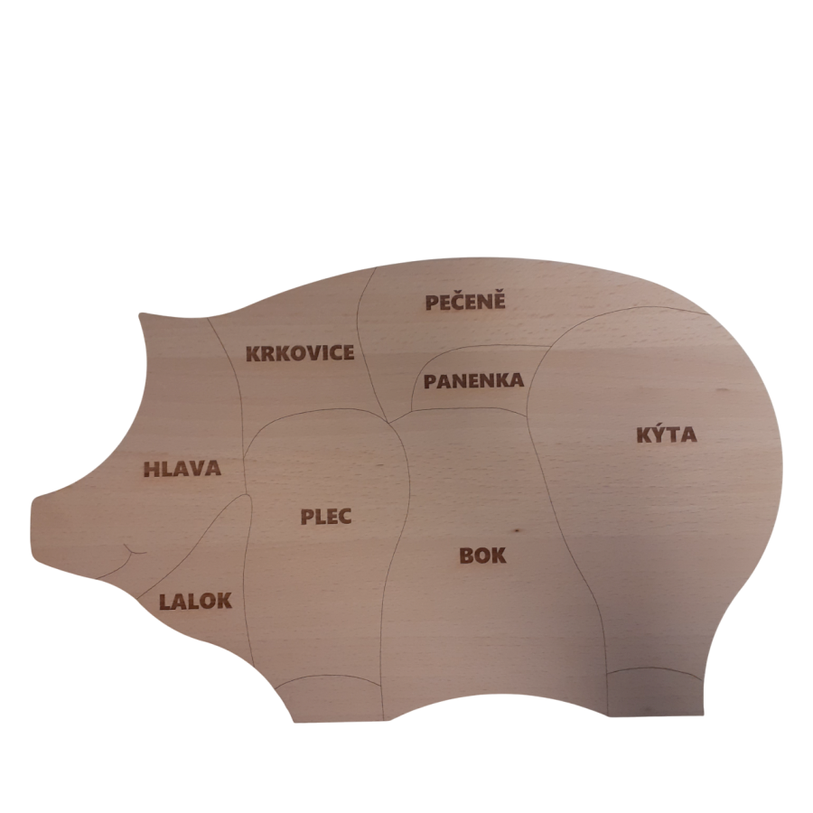 • za příplatek 20,- Kč je možné na prkénko vyznačit laserem jednotlivé druhy masa
