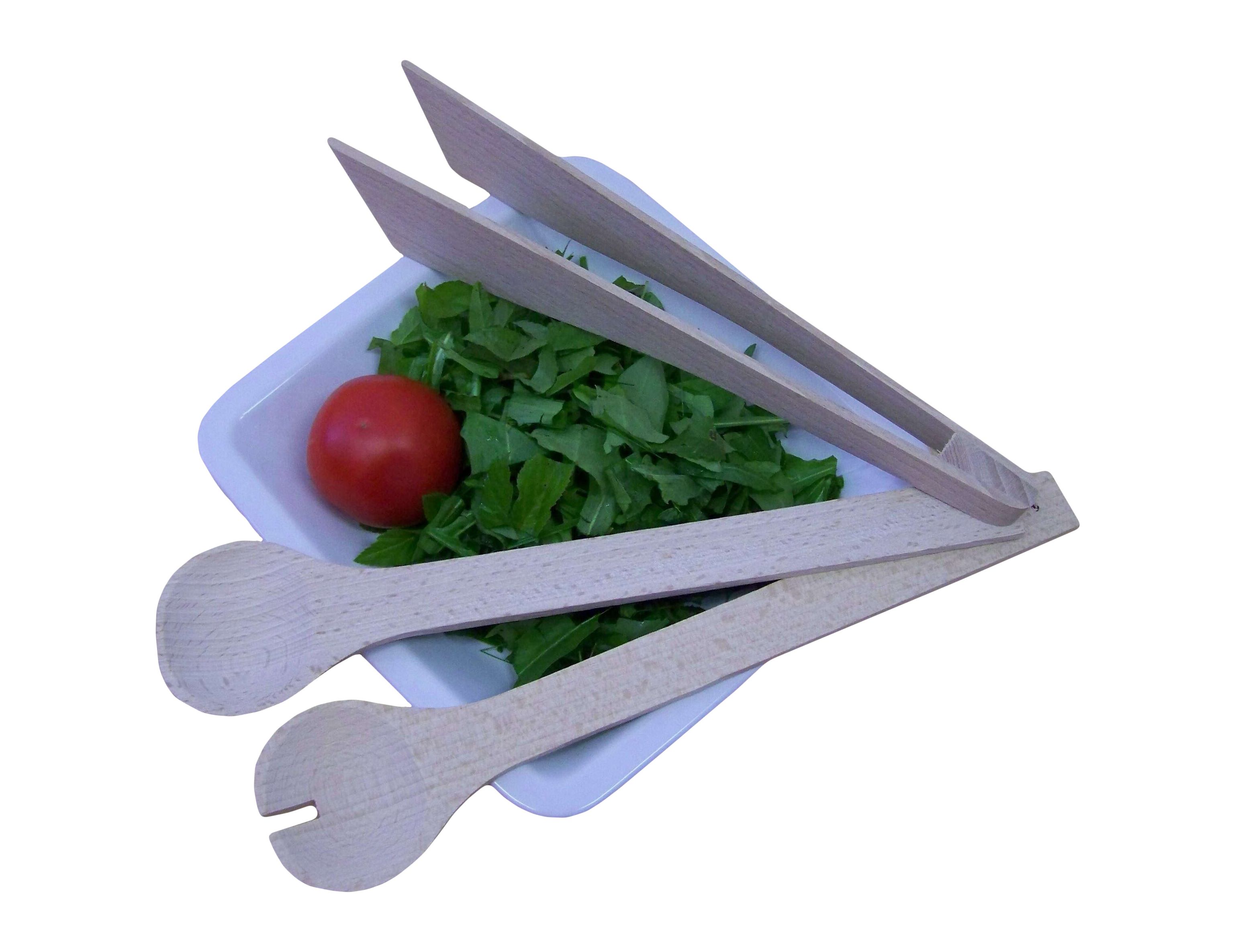 Sada tří výrobků z bukového dřeva pro snadnou přípravu a servírování salátů.