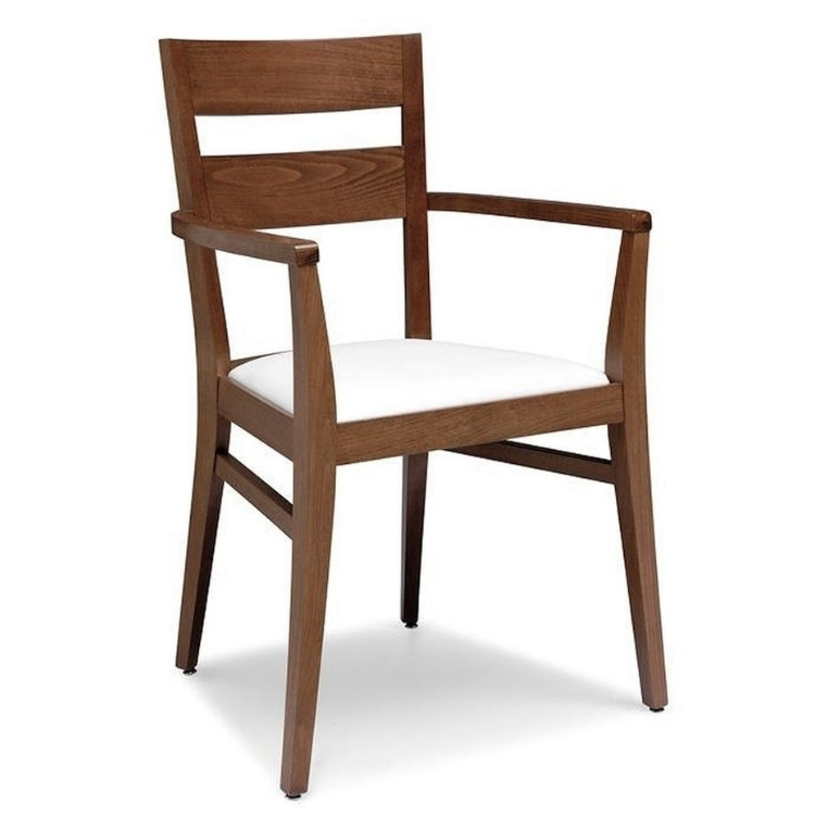 Buková židle s opěrkami v moření tmavě hnědá. Čalouněný sedák.